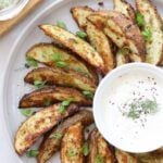 Say hello to your new favorite side dish! These ranch seasoned potato wedges are air fried, then served with ranch dressing for dipping. I’ve been making them almost daily lately, just because they’re so darn good.