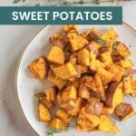 I like to serve the sweet potato cubes with easy main dishes like Instant Pot pork chops, crockpot chicken thighs, and grilled chicken bbq drumsticks. They’re a much healthier option compared to French fries and just as tasty.