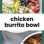Plus, it’s incredibly easy to make! All you need to do is cook and shred the chicken, add it to your bowls, toss on your favorite burrito toppings and you are good to go.